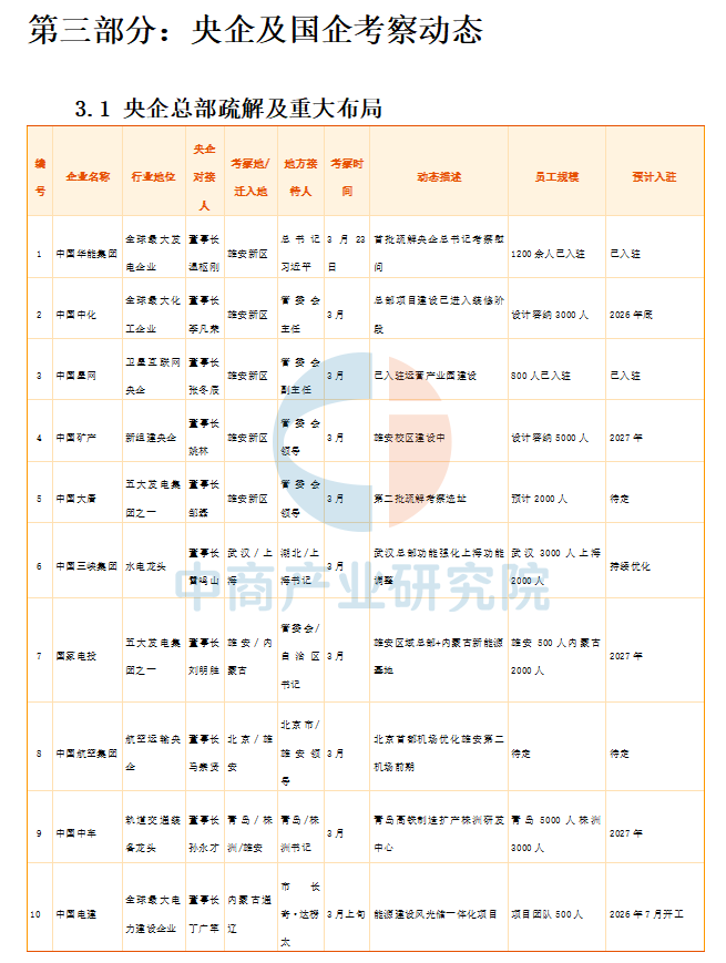本章节汇总了央企总部疏解及重大布局及地方国企及平台公司考察动态。