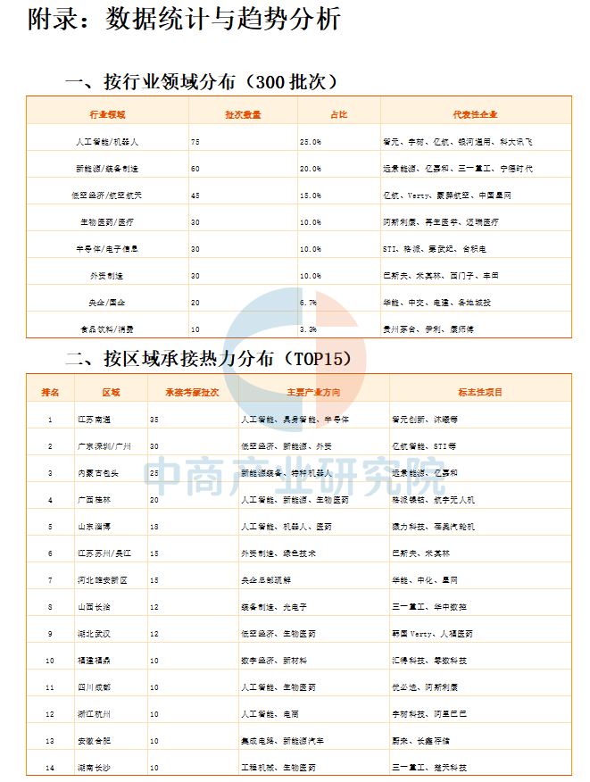 本章节梳理了企业考察行业分布数据、按区域承接热力分布数据、企业性质分布、高层对接率。