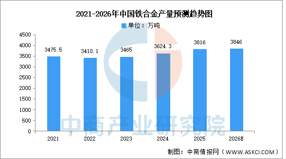 中商情报网讯:“双碳”背景下,铁合金行业供需逐步得到改善,在减排的驱动下将进入高质量发展阶段。中商产业研究院发布的《2026-2031年中国碳化硅衬底行业市场前景预测与发展趋势研究报告》显示,2025年中国铁合金产量达3816万吨,同比增长5.6%。中商产业研究院分析师预测,2026年中国铁合金产量将达3846万吨。