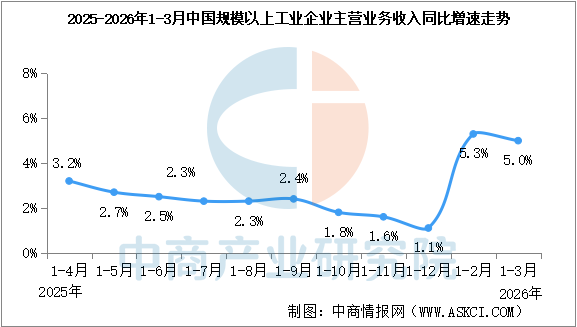 中商情报网讯:1—3月份,规模以上工业企业实现营业收入33.19万亿元,同比增长5.0%;发生营业成本28.19万亿元,增长4.5%;营业收入利润率为5.11%,同比上升0.46个百分点。