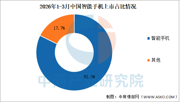 2026年1-3月,智能手机上市新机型65款,同比下降22.6%,占同期手机上市新机型数量的82.3%。