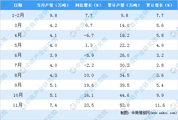 中商情报网讯:据中商产业研究院数据库显示,2020年11月湖南省农用氮磷钾化肥产量为7.4万吨,同比增长23.5%。