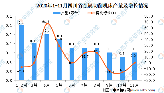 中商情报网讯:据中商产业研究院数据库显示,2020年11月四川省金属切削机床产量为0.1万台,同比无变化。