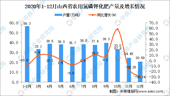 2020年12月山西省农用氮磷钾化肥产量增长情况