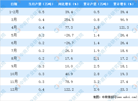中商情报网讯:据中商产业研究院数据库显示,2020年12月宁夏回族自治区化学农药原药产量为0.4万吨,同比增长122.2%。