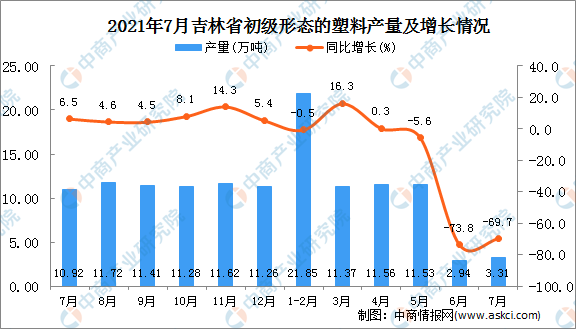 2021年7月吉林省初级形态的塑料增长情况