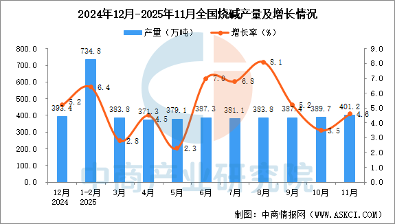 2025年11月全国烧碱产量增长情况