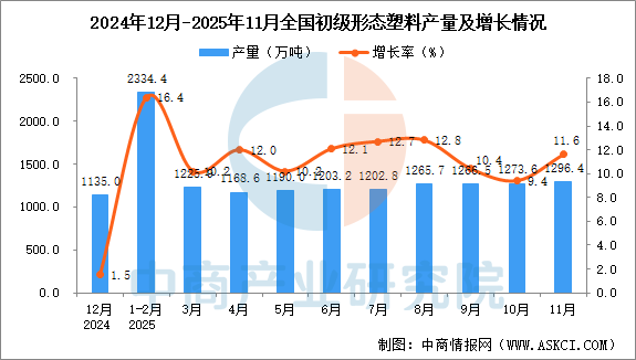 2025年11月全国初级形态塑料产量增长情况