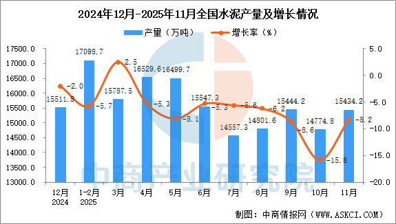 2025年11月全国水泥产量增长情况
