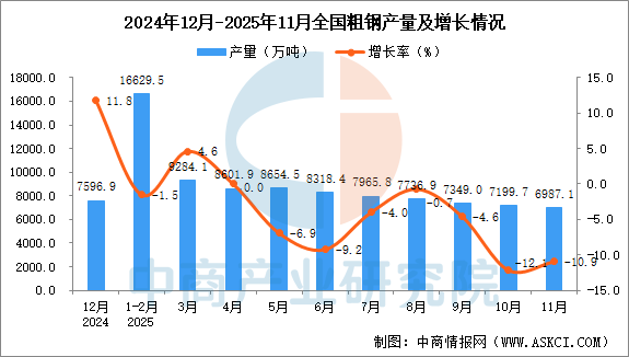 2025年11月全国粗钢产量增长情况
