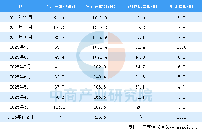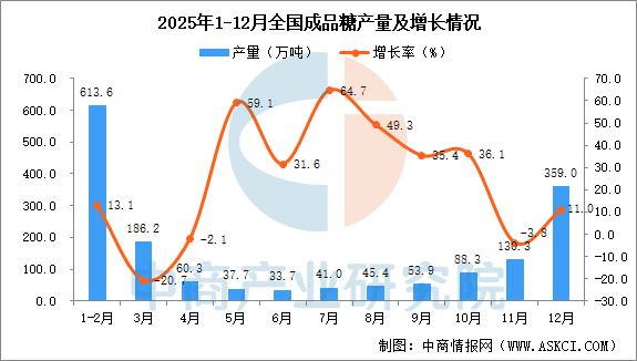 2025年12月全国成品糖产量增长情况