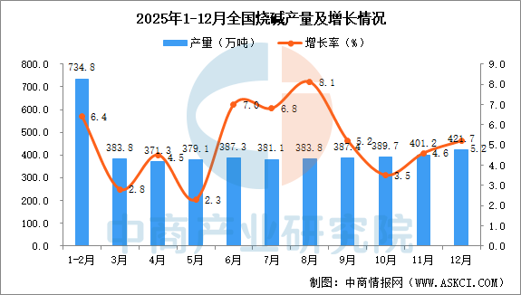 2025年12月全国烧碱产量增长情况