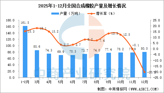 2025年12月全国合成橡胶产量增长情况