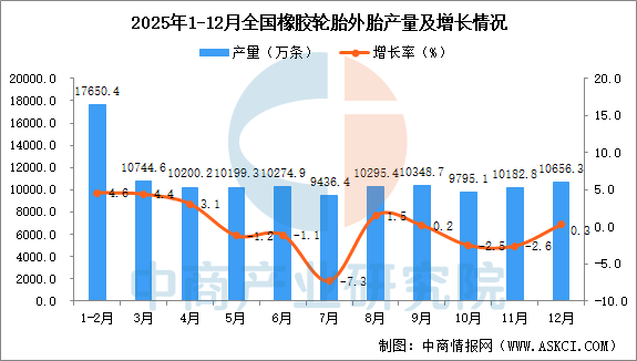 2025年12月全国橡胶轮胎外胎产量增长情况