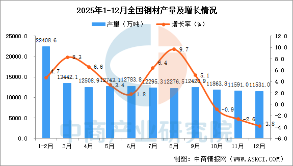 2025年12月全国钢材产量增长情况