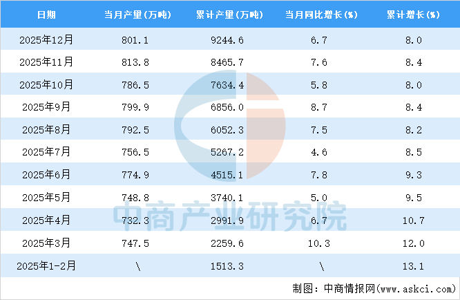 中商情报网讯:据中商产业研究院数据库,2025年12月全国氧化铝当月产量与去年同期相比增长。2025年12月全国氧化铝产量为801.1万吨,同比增长6.7%。2025年1-12月全国氧化铝产量9244.6万吨,同比增长8.0%。