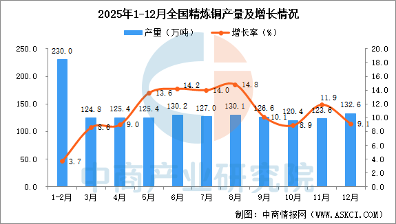 2025年12月全国精炼铜产量增长情况