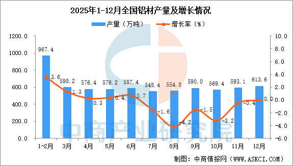 2025年12月全国铝材产量增长情况