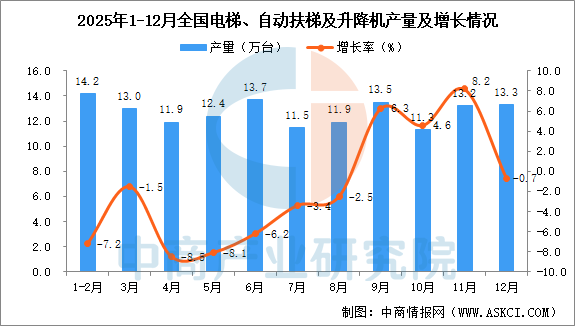 2025年12月全国电梯、自动扶梯及升降机产量增长情况