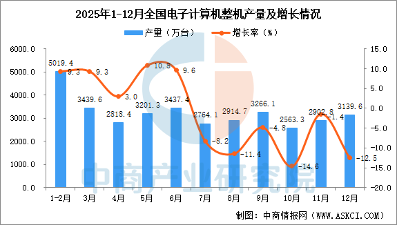 2025年12月全国电子计算机整机产量增长情况