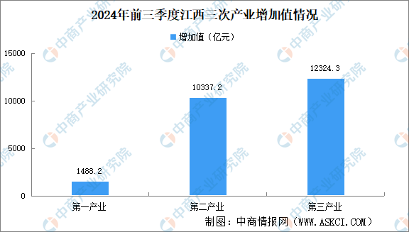 中商情报网讯:今年以来,江西全省经济稳步回升、稳中有进,主要经济指标增速总体好于上半年。根据地区生产总值统一核算结果,前三季度全省地区生产总值24149.8亿元,按不变价格计算,同比增长4.7%。其中,第一产业增加值1488.2亿元,增长3.2%;第二产业增加值10337.2亿元,增长7.1%;第三产业增加值12324.3亿元,增长2.9%。