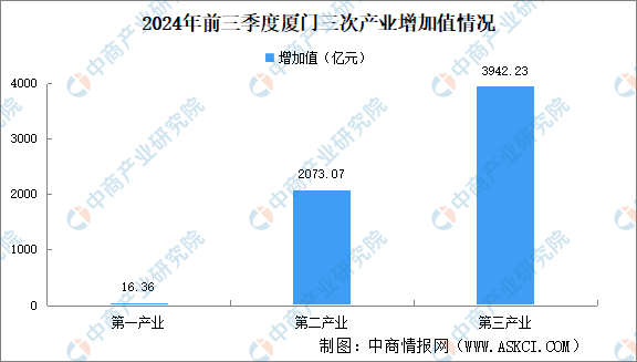 中商情报网讯:前三季度厦门市经济运行总体保持稳定,结构调整持续优化,发展态势稳定向好,高质量发展扎实推进。初步核算,前三季度,全市实现地区生产总值(GDP)6031.66亿元,增长4.9%。分产业看,第一产业增加值16.36亿元,下降10.3%;第二产业增加值2073.07亿元,增长6.3%;第三产业增加值3942.23亿元,增长4.1%。