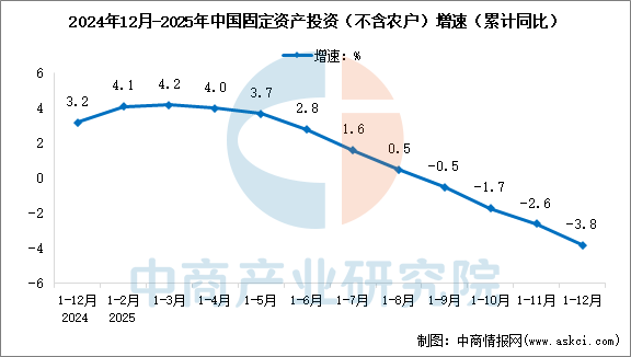 全年全国固定资产投资(不含农户)514374亿元,比上年增长3.2%;扣除房地产开发投资,全国固定资产投资增长7.2%。分领域看,基础设施投资增长4.4%,制造业投资增长9.2%,房地产开发投资下降10.6%。全国新建商品房销售面积97385万平方米,下降12.9%;新建商品房销售额96750亿元,下降17.1%。分产业看,第一产业投资增长2.6%,第二产业投资增长12.0%,第三产业投资下降1.1%。民间投资下降0.1%;扣除房地产开发投资,民间投资增长6.0%。高技术产业投资增长8.0%,其中高技术制造业、高技术服务业投资分别增长7.0%、10.2%。高技术制造业中,航空、航天器及设备制造业,计算机及办公设备制造业投资分别增长39.5%、7.1%;高技术服务业中,专业技术服务业、科技成果转化服务业投资分别增长30.3%、11.4%。12月份,固定资产投资(不含农户)环比增长0.33%。