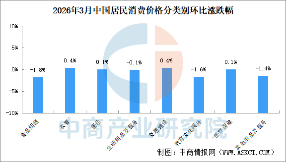 其他七大类价格环比四涨三降。其中,衣着、交通通信价格均上涨0.4%,居住、医疗保健价格均上涨0.1%;教育文化娱乐、其他用品及服务、生活用品及服务价格分别下降1.6%、1.4%和0.1%。