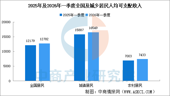 一季度,全国居民人均可支配收入12782元,同比名义增长4.9%,扣除价格因素实际增长4.0%。按常住地分,城镇居民人均可支配收入16549元,同比名义增长4.2%,实际增长3.2%;农村居民人均可支配收入7433元,同比名义增长6.1%,实际增长5.4%。从收入来源看,全国居民人均工资性收入、经营净收入、财产净收入、转移净收入分别名义增长4.9%、6.6%、1.6%、5.1%。全国居民人均可支配收入中位数10433元,同比名义增长5.0%。
