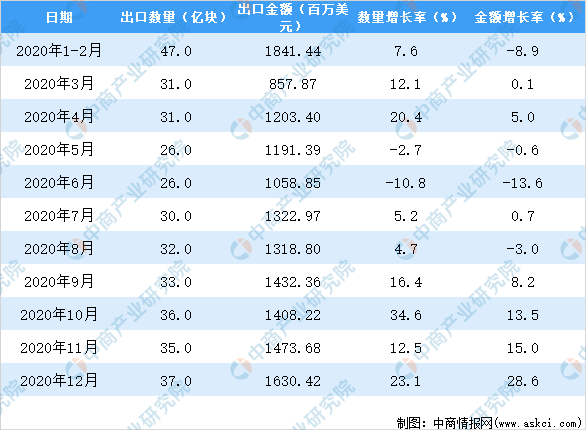 中商情报网讯:据中商产业研究院数据库显示,2020年中国印刷电路出口量为363亿块,同比增长10.9%。
