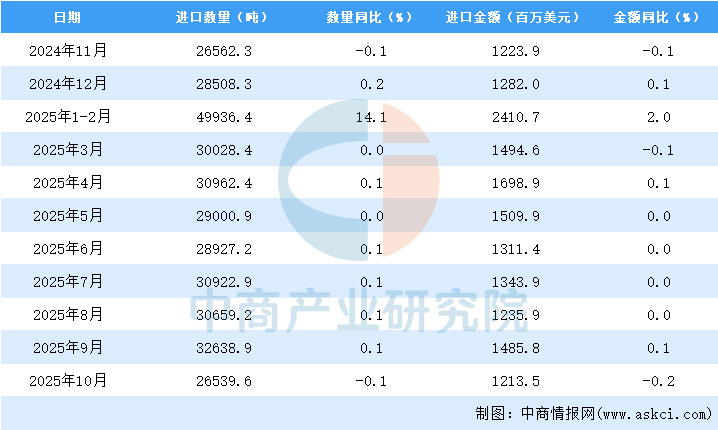 从金额方面来看,2025年10月中国美容化妆品及洗护用品进口金额1213.5百万美元,同比下降0.2%;1-10月中国美容化妆品及洗护用品进口金额13599.3百万美元,同比下降1.6%。