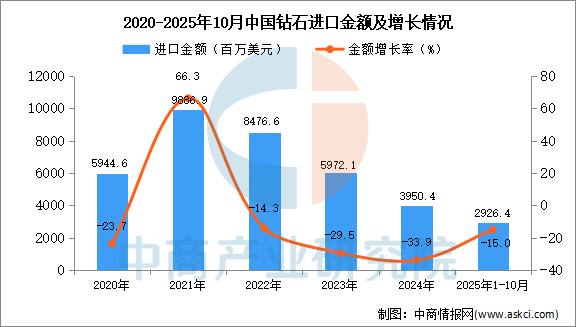 更多资料请参考中商产业研究院发布的《中国钻石市场前景及投资机会研究报告》,同时中商产业研究院还提供产业大数据、产业情报、行业研究报告、行业白皮书、行业地位证明、可行性研究报告、产业规划、产业链招商图谱、产业招商指引、产业链招商考察&推介会、“十五五”规划等咨询服务。