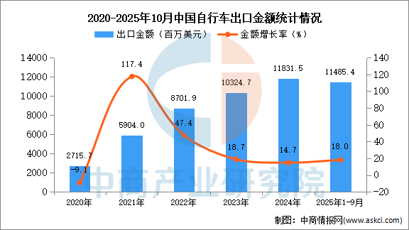 从金额方面来看,数据显示,2025年1-10月中国货车出口金额11485.4百万美元,同比增长18%。