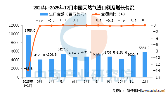 2025年12月中国天然气进口量及金额增长情况