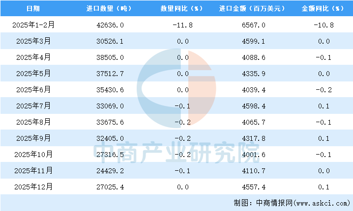 从金额方面来看,2025年12月中国医药材及药品进口金额4110.7百万美元,同比增长持平;1-12月中国医药材及药品进口金额49339.1百万美元,同比下降4.4%。