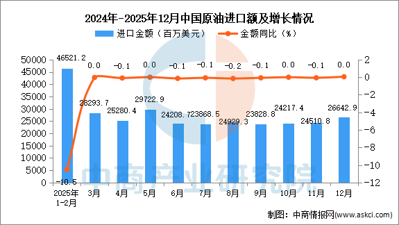 2025年12月中国原油进口量及金额增长情况