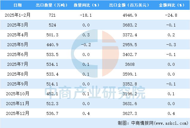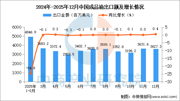 2025年12月中国成品油出口量及金额增长情况