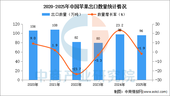 2025年12月中国苹果出口量及金额增长情况