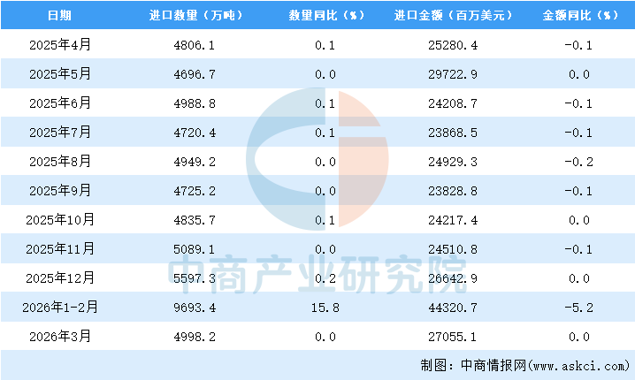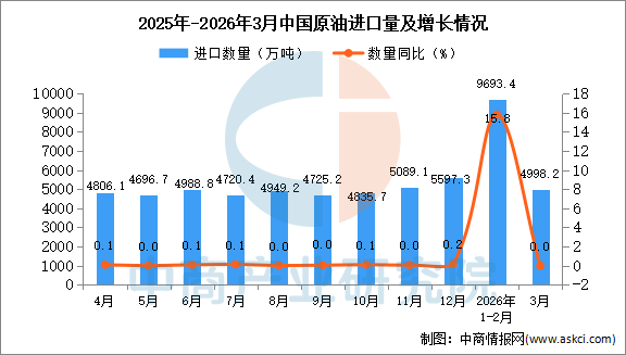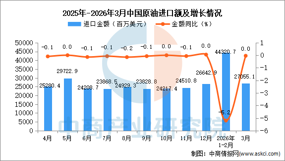 2026年3月中国原油进口量及金额增长情况