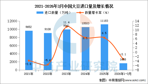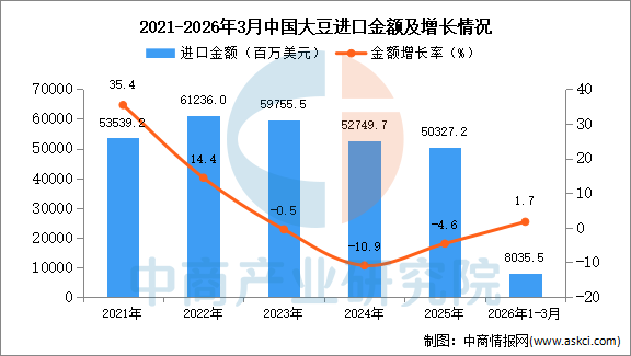 2026年3月中国大豆进口量及金额增长情况