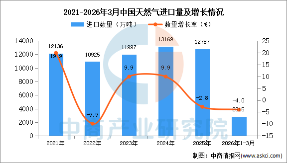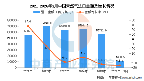 2026年3月中国天然气进口量及金额增长情况