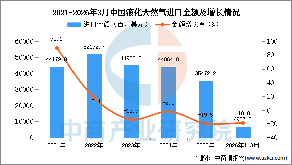 2026年3月中国液化天然气进口量及金额增长情况