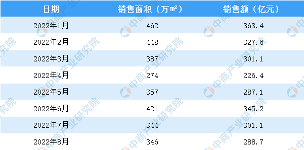 2022年1-8月碧桂园销售面积及金额情况统计