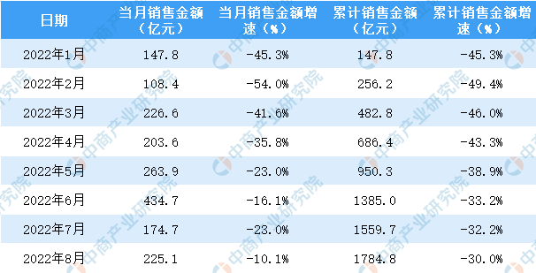 2022年8月中海地产销售简报:销售额同比下降10.1%(附图表)