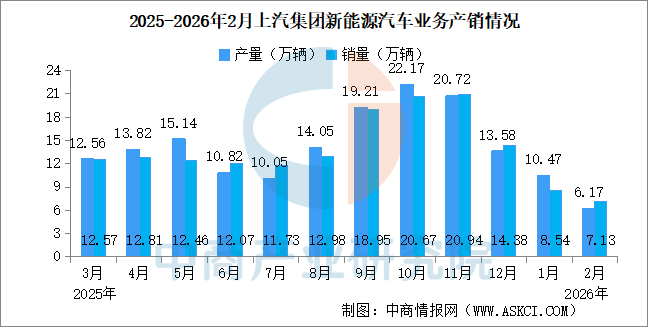 2月,上汽集团新能源汽车产量6.17万辆,同比减少11.17%。销量7.13万辆,同比减少17.18%。1-2月,上汽集团新能源汽车累计产量16.64万辆,同比增长6.30%。累计销量15.67万辆,同比增长6.44%。