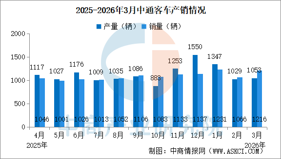 3月中通客车销量1216辆,同比增长17.72%。1-3月中通客车累计销量3513辆,同比增长27.01%。
