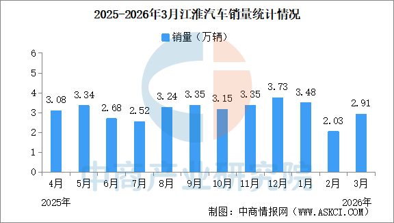 中商情报网讯:3月江淮汽车产量2.89辆,同比减少18.46%。汽车销量2.91辆,同比减少21.78%。1-3月,3月江淮汽车累计产量9.65万辆,同比增长0.81%。累计销量8.43辆,同比减少15.51%。