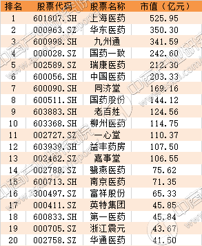 中商情报网讯,据中商产业研究院大数据库数据显示,截至12月30日收盘,A股医药商业行业总计有20家上市公司,行业总市值达3142.23亿元。其中市值最高的是上海医药,市值高达525.95亿元,华东医药和九州通分别以350.30亿元和341.59亿元的市值分列二三位。详细排名如下: