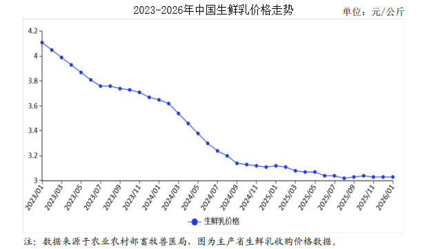 中商情报网讯:2026年1月,生鲜乳价格环比持平。国内市场:生鲜乳产能持续优化,随着节日消费拉动,乳制品消费有望增长,预计生鲜乳收购价格企稳回升。国际市场:全球牛奶产量增加,乳制品供应充足,中东、非洲等地区需求强劲,预计后期价格震荡上行。