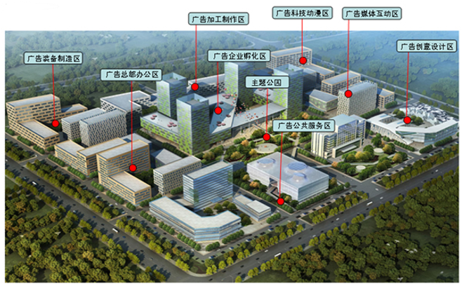 广告媒体互动区占地面积33亩,拟在媒体互动区引进利用网络广告、移动电视、楼宇视频、手机广告等新媒体广告发布企业。